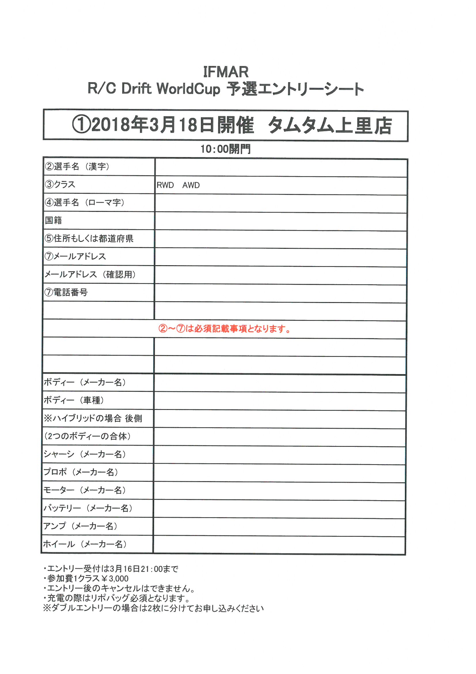 TamTam千葉店RCサーキットにて「トライアルD 2018」を開催します。