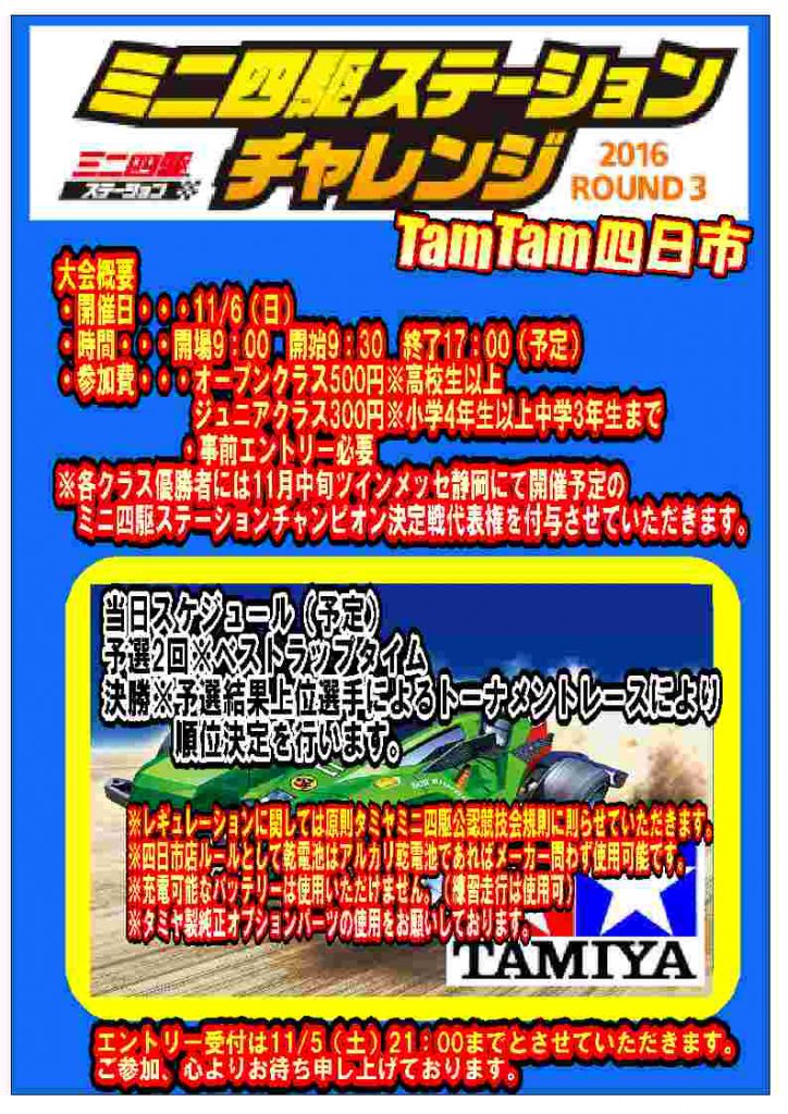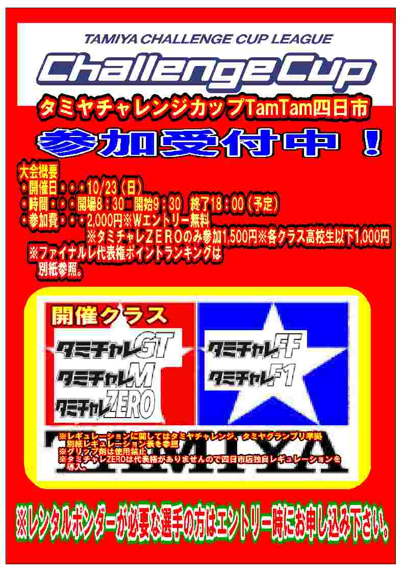 タミヤチャレンジカップTamTam四日市シリーズ戦の最終戦を開催させていただきます。